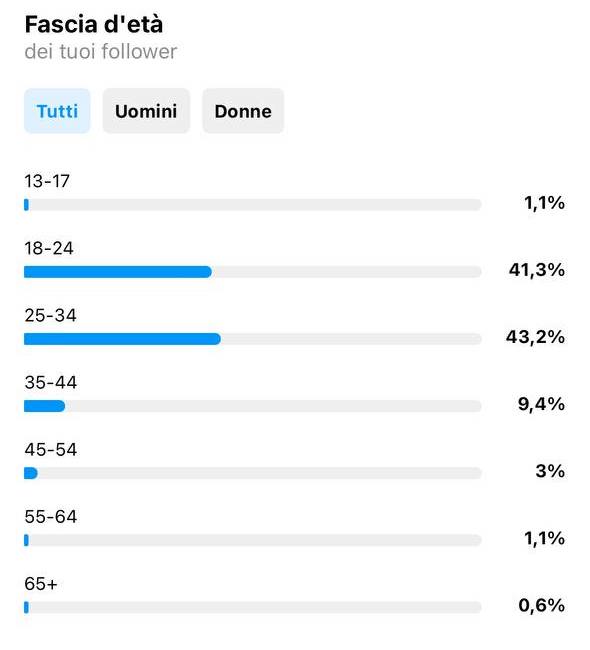 Ecco qualche dato indicativo sulla mia audience Instagram e Youtube.